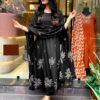 Bring traditional charm and modern elegance together with this Long Kurta featuring Discharge Floral Print and Printex, paired beautifully with matching pants and a dupatta. This set is designed for women who appreciate comfort without compromising on style. Whether you’re attending a festive occasion or a casual gathering, this set ensures you look graceful and feel comfortable all day long.