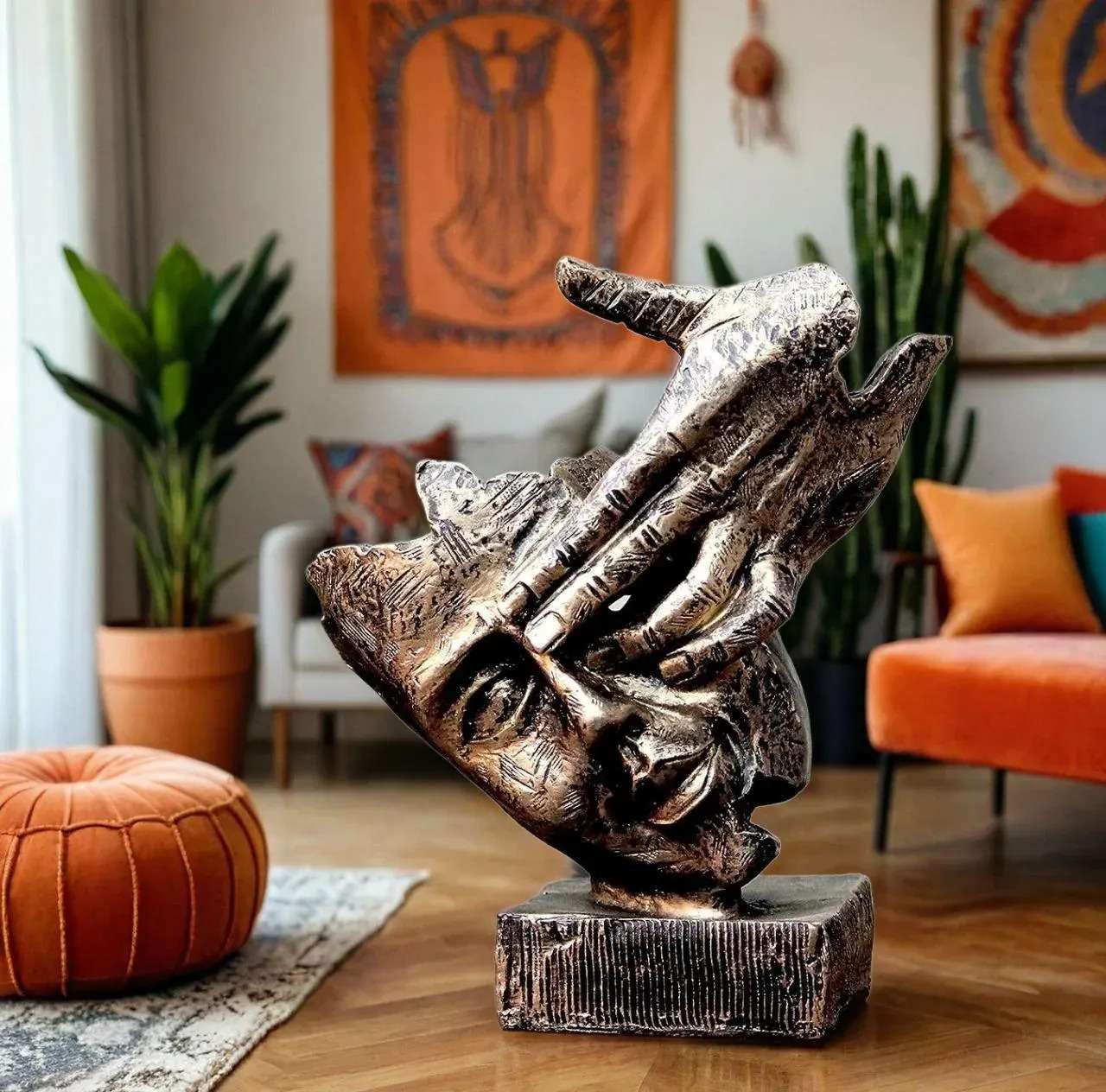 Presents You a New series of Decorative Showpiece Which We can Give Gift To someone Special and also we can use them for Home D?cor Purpose.Everyone wants perfect peace of mind that’s free from ignorance, greed, hatred and other afflictive states. Handicraft Human Face On Hand Statue Showpieces has always been a great symbol of peace. So, what could be a better gift or a better option to bring home than the Figurine of Human Face On Hand statue showpiece. The Human Face On Hand Figurine is made of premium quality polyresin and has been designed beautifully. This Figurine Human Face On Hand statues showpiece for home decor, car dashboard, living room, bedroom etc. Best Gift Or A Better Option To Bring Home Than The Figurine Of A Human Face On Hand statue . A Perfect Gift : It Is A Best Gift For Marriage Anniversary , Parents , Mothers Day , Wedding Gift , Birthday , House Warming , Office / Shop Inaugration , Festive Occasions – Like Diwali ,Raksha Bandhan , Grah Pravesh And Corporate Gifts. Human Face On Hand Statue Big Size Bring Prosperity and Success . A Positive Impact : As Per Vastu Methology Religious Spritual Figurine Statue Showpieces Placed In North East Direction Of Drawing / Living , Brings Wealth , Health , Peace And Happiness Among The Home Members. Modern Art Human Face On Hand Figurine Statue of Premium quality material and has been designed beautifully.This Human Face On Hand statue showpiece used for table decor, table decorations, office decorations, showpiece for car,showcase decorations,showpiece items,showpiece for living room etc. This Human Face On Hand Figurine statue showpiece is one of the most popular statues