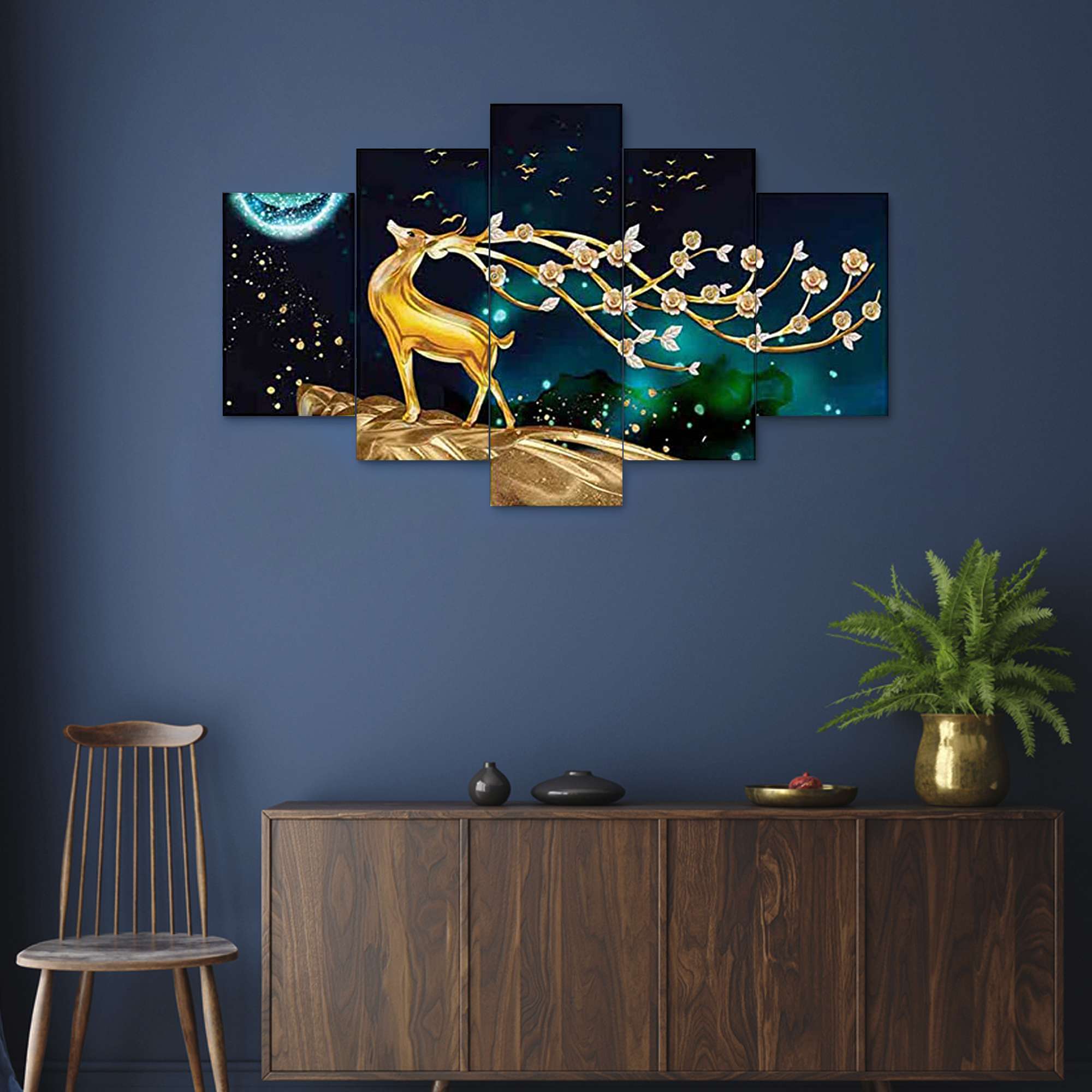 Elevate your home decor with the exquisite Set of Five 3D Framed Paintings. These captivating artworks are designed to bring a touch of elegance and sophistication to your living space. Ideal for home, living room, and bedroom decoration, this collection adds a vibrant and artistic flair to any room.Presents This Set Of 5 Amazing Paintings For Your Wall . The Painting Will Completely Change The Atmosphere Of The Room Whire It is Placed . The Paintimg Is Made On Heavy Wooden Board And Has A Digital UV Coating On It Which MAKES It Very Easy To Clean . Pricing Of The Product Is Made Very Reasonable From Our Brand As Per The Quality We Are Providing To Our Customers